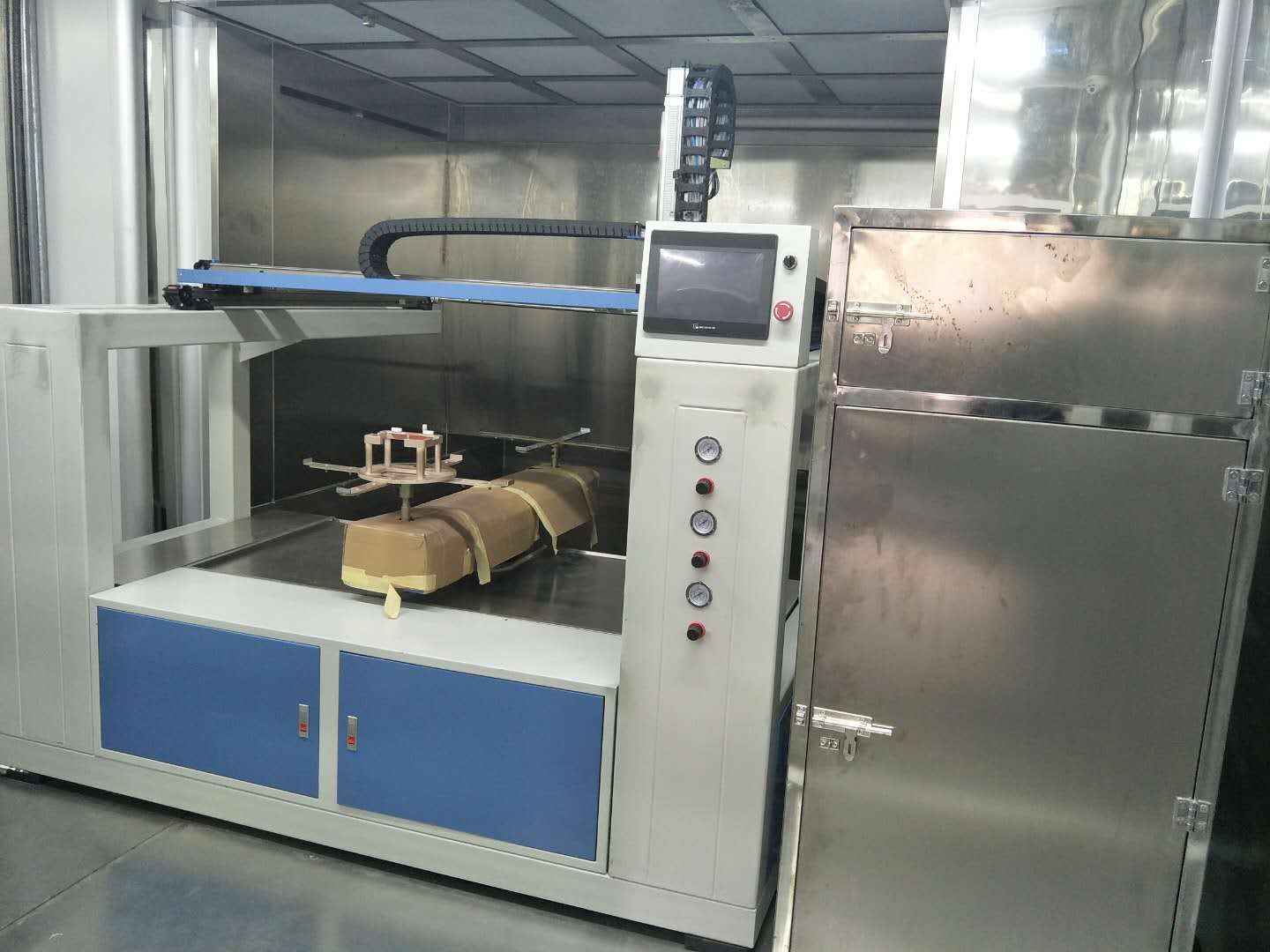 8、噴槍的霧化,噴幅及油漆可通過PLC遠程控制,噴槍可只吹氣不噴漆執(zhí)行除塵功能(選配)
